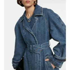 This Chloé coat is a statement piece that will last throughout the seasons. Crafted from medium blue wash denim, it features a relaxed silhouette with oversized lapels, large side pockets, and a tonal belt to highlight your waist.