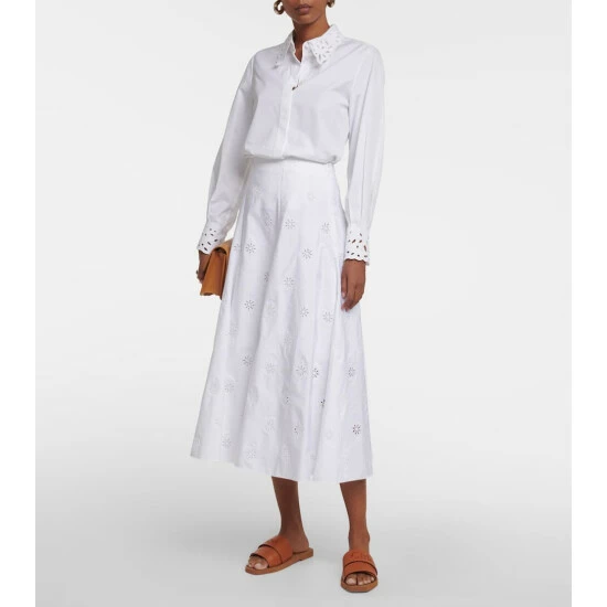 This summery midi skirt from Chloé is made from cotton with broderie anglaise detailing. It has a full silhouette with stitched pleats.