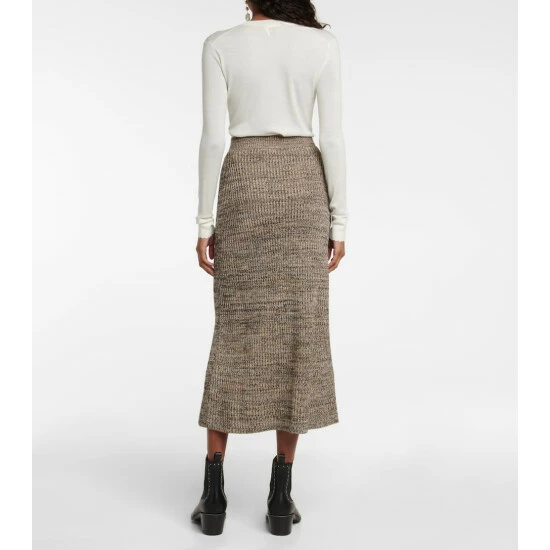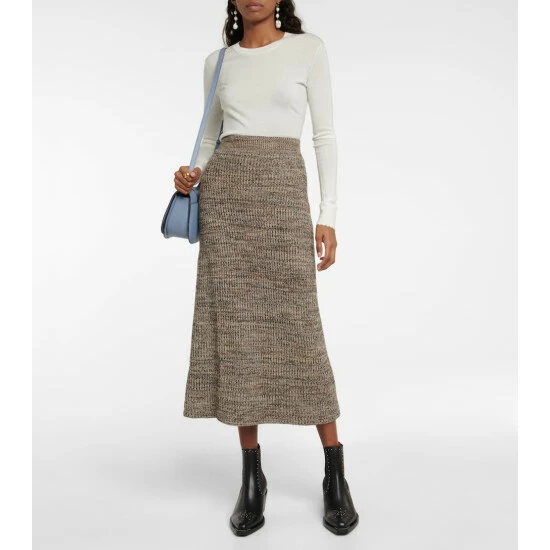 Add a tactile touch to your edit with this knit Chloé skirt. Sitting high at the waist, this mid-length style is spun from cashmere and silk.
