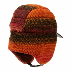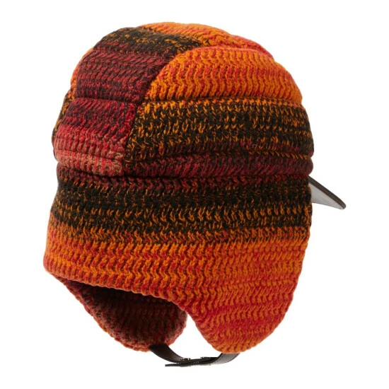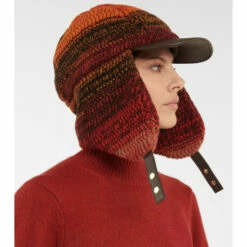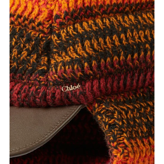 This leather-trimmed trapper hat from Chloé is crafted from crocheted cashmere in a palette of sunset hues.