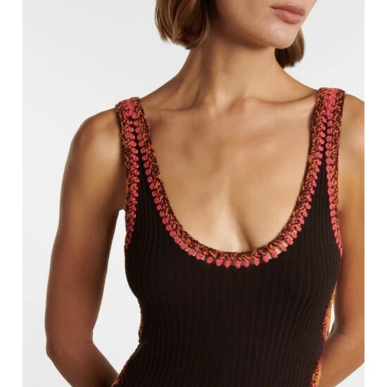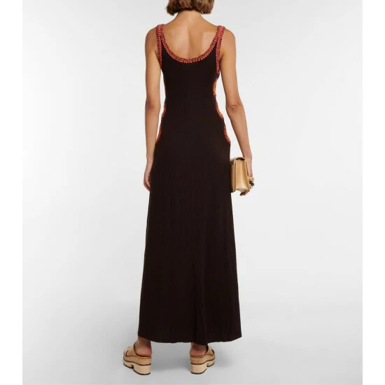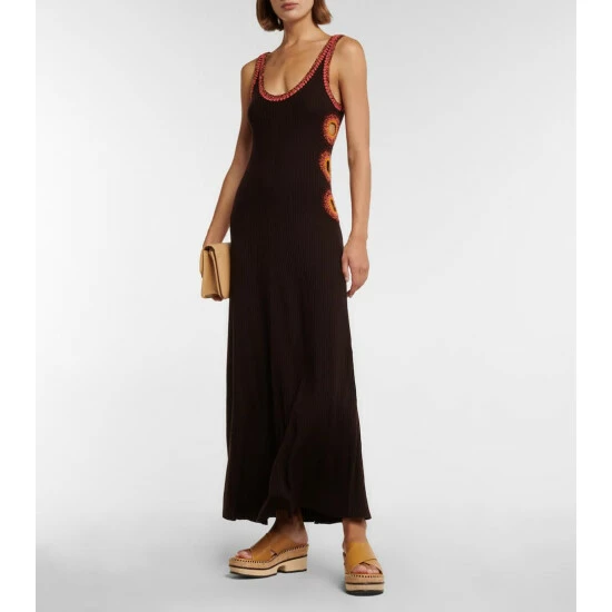 Chloé’s tank maxi dress is made from pure wool with colorful hand-crocheted details at the scoop neck and side cutouts. Ribbed-knit, it has a fitted silhouette and is naturally stretchy.
