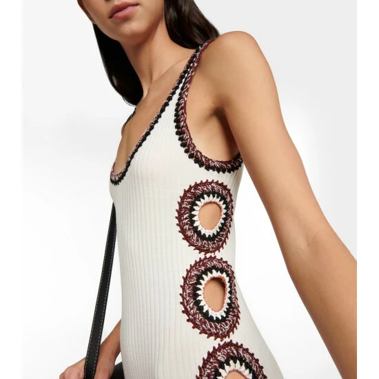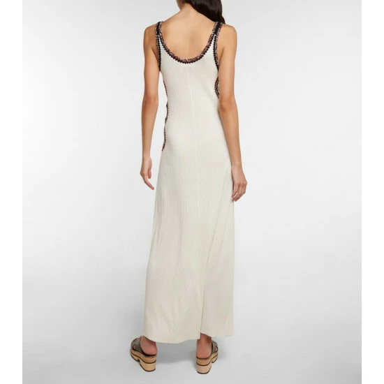 Chloé’s tank maxi dress is made from pure wool with colorful hand-crocheted details at the scoop neck and side cutouts. Ribbed-knit, it has a fitted silhouette and is naturally stretchy.