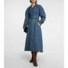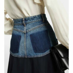 This Chloé midi skirt features a relaxed, A-line silhouette and is crafted from panels of medium blue wash cotton denim and navy wool gabardine.