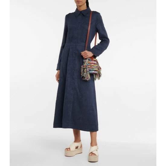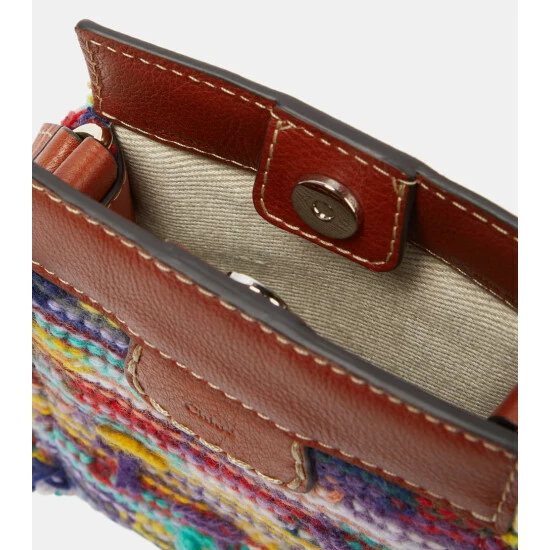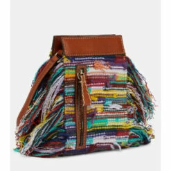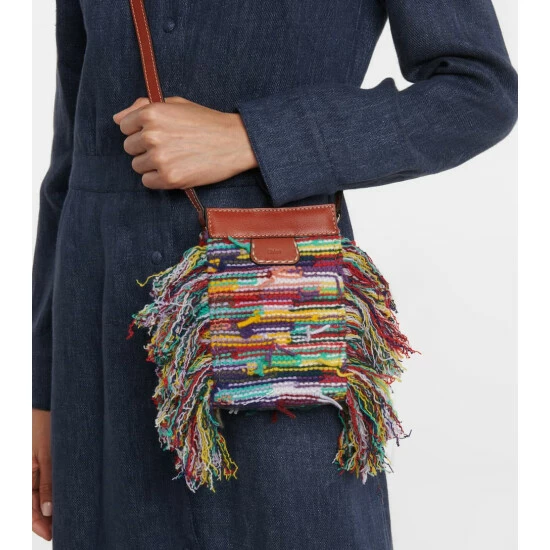 Chloé’s Edith family now extends to this crossbody silhouette made from label-signature, recycled cashmere in a striped pattern with playful fringing. This leather-trimmed design has a magnetic closure and an external zipped pocket.