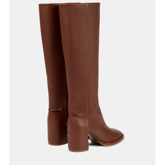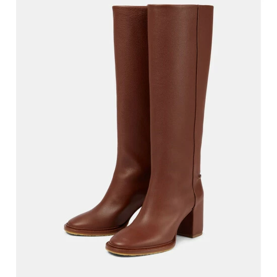 The brown Edith leather boots from Chloé will add a characteristically bohemian feel to your fall looks. Made in Italy, they have a knee-high silhouette with rounded toes and block heels, making them suitable for day-to-night and beyond.
