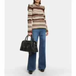 The re-edition of Chloé’s iconic Edith Medium tote feels contemporary yet nostalgic. This top-handle silhouette is made from black buffalo leather and complete with the brand’s characteristic saddle stitching and buckle straps.