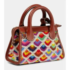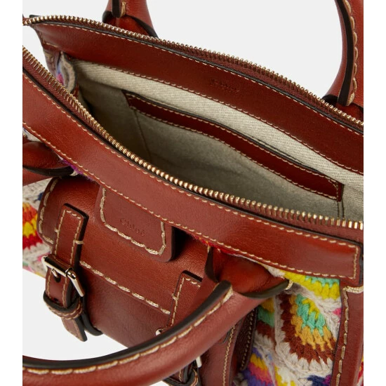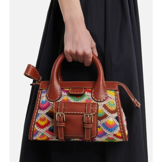 Chloé’s Edith family now extends to this Mini bag, which is made from recycled cashmere crochet in a label-signature scalloped patchwork pattern. This leather-trimmed design has a zipped top closure and an external pocket.