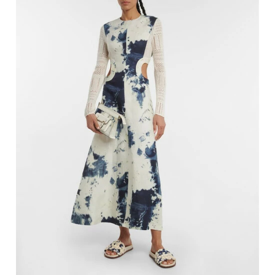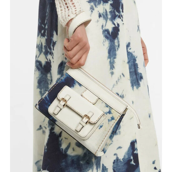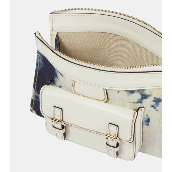 Chloé’s Edith family now extends to this clutch which is made from linen and digitally printed with an exclusive Shibori tie-dye pattern. This leather-trimmed design has a zipped top closure and an external pocket.