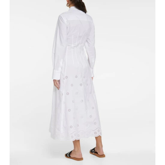 This long-sleeved shirt dress from Chloé highlights the brand’s affinity for elegant and classic silhouettes. Made from pure cotton and featuring an embroidered collar, this design comes in a midi length.
