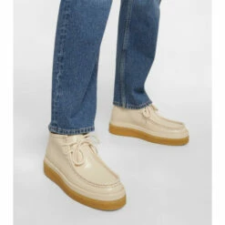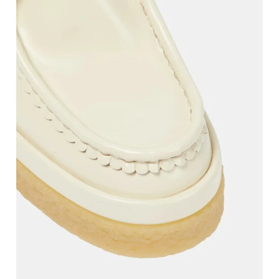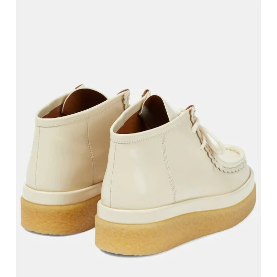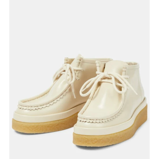 This iteration of Chloé’s Jamie boots is distinguished by chunky gum soles. This lace-up design has smooth calfskin leather uppers, finished with tonal laces and scalloped trimming.