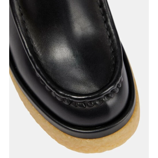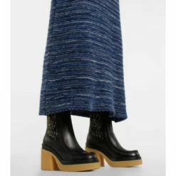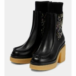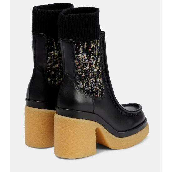 Chloé’s Jamie ankle boots have knitted sock-like cuffs for an extra-cozy look. They are made from smooth black calfskin leather and set on platform soles with chunky block heels.