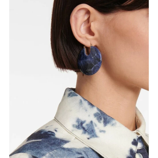 Gabriela Hearst’s fascination with natural gemstones shines through in the Jemma earrings. They’re crafted from marbled blue sodalites and hang from minimalist hinge fastenings made from golden brass.