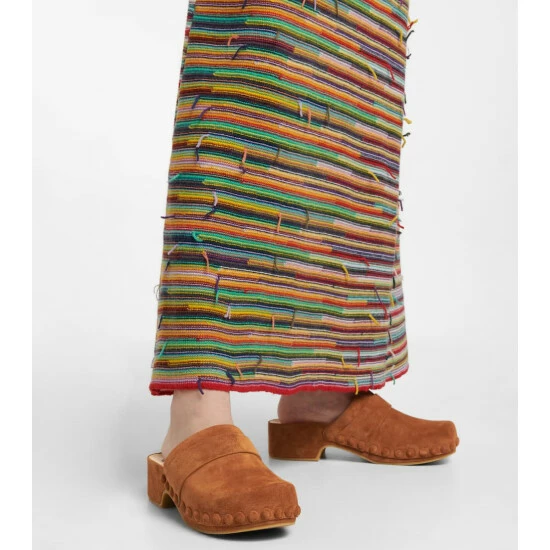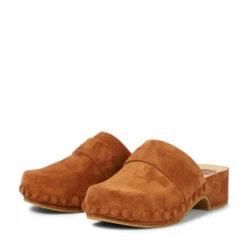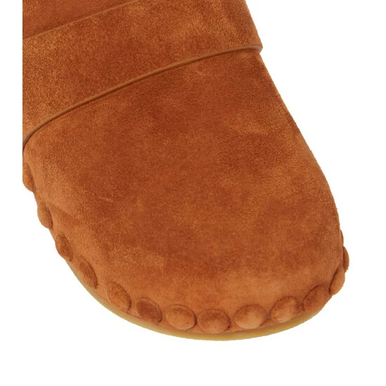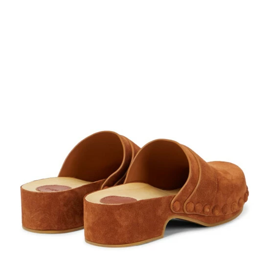 The Joy clogs from Chloé are the perfect transition from closed shoes to slides. Made in Italy from brown suede, they are secured to a wooden sole by tonal studs.