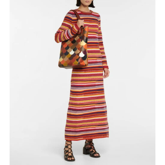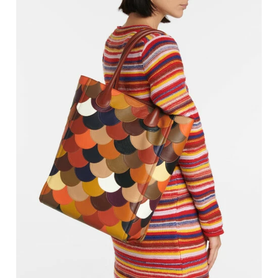 Step into the refined bohemia Chloé is so coveted for while swinging the Joyce tote by your side. It’s an expertly structured design with a brass frame that recalls ’50s pouches, and earthy-hued scallops, all made from grained nappa leather and then meticulously placed onto the piece. The tubular handles are a label signature.