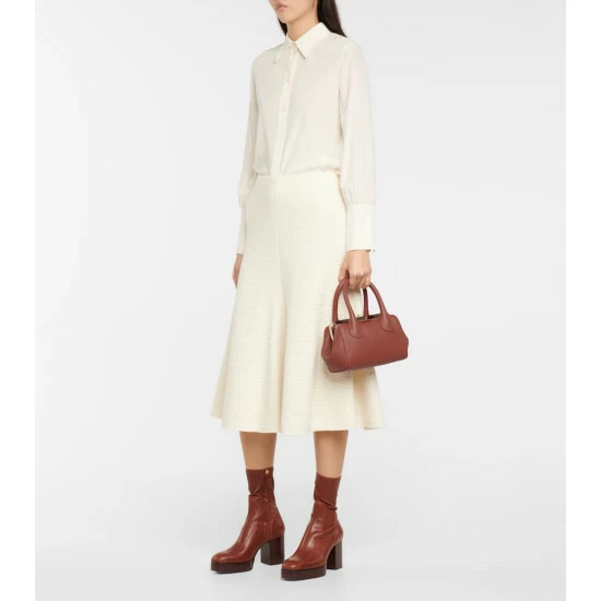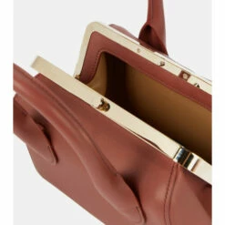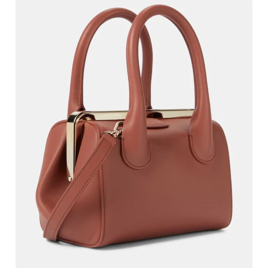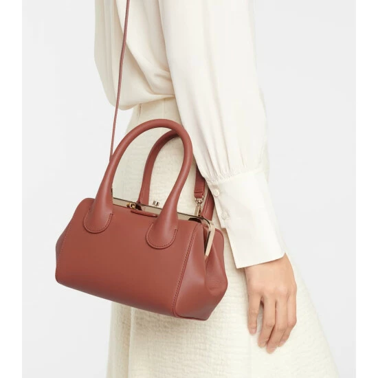 Invest in a bag with a timeless silhouette like Chloé’s Joyce Small tote, a sophisticated top-handle design. It’s crafted from brown calfskin leather that’s set on a pale gold-tone frame with clasp fastening.