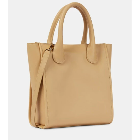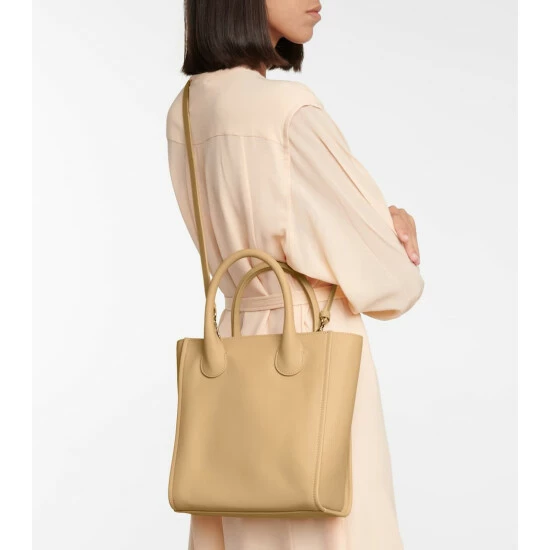 Invest in a bag with a timeless silhouette like Chloé’s Joyce Small tote, a sophisticated, slim top-handle design. It’s crafted from beige calfskin leather that’s set on a pale gold-tone frame with clasp fastening.