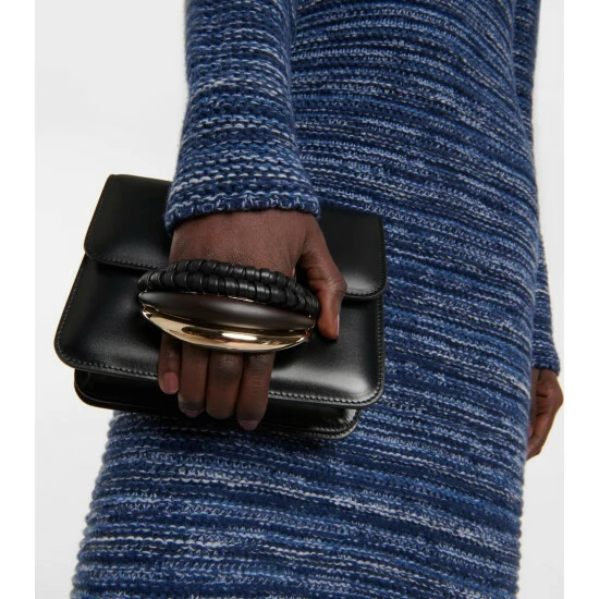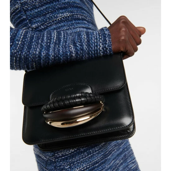Carry the Kattie bag from Chloé in-hand by its brass and leather cuff. It’s made from leather with tonal blanket stitching for an artisanal finish. Note the detachable crossbody strap for versatile wear.
