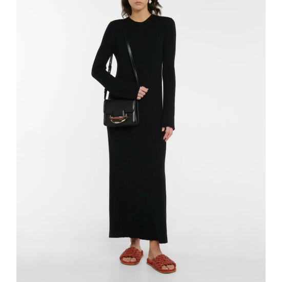 Chloé’s Kattie crossbody bag doubles as a clutch for versatile styling. It’s made from black leather which is coated to prevent damage, and features a trio of bracelet handles made from brass, wood and leather.