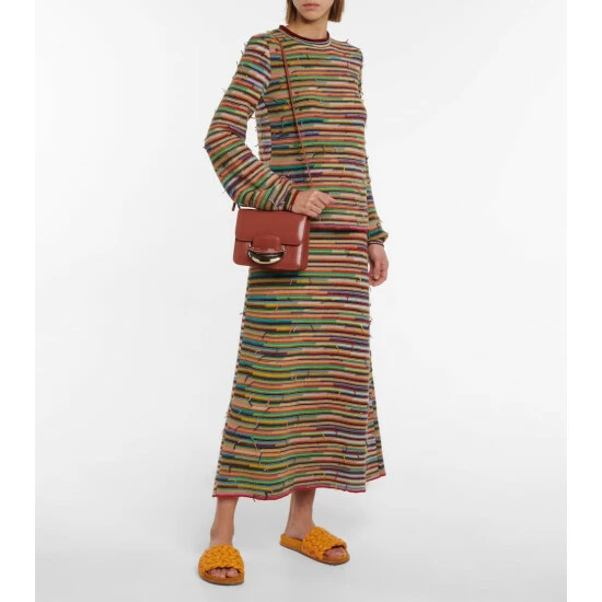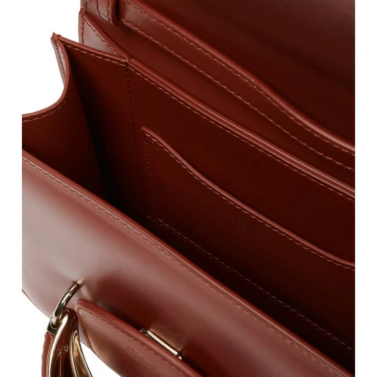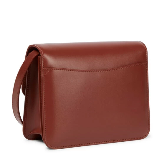 Chloé’s Kattie Small shoulder bag doubles as a clutch for versatile styling. It’s made from dark brown coated semi-aniline leather, and features a trio of bracelet handles made from brass, wood and leather.