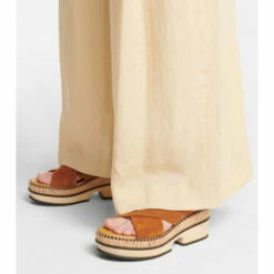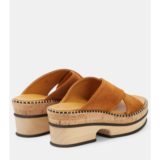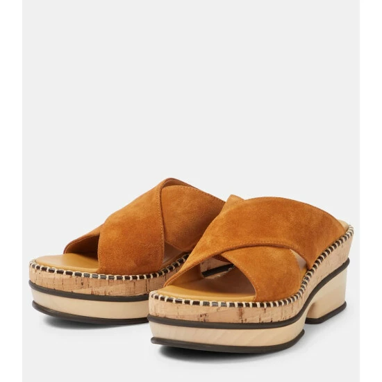 Chloé’s Laia sandals are made from suede with wide crossover straps. This brown style has decorative blanket stitching, and rests upon intriguing cork midsoles and wooden platforms to bring effortless elegance to your everyday.
