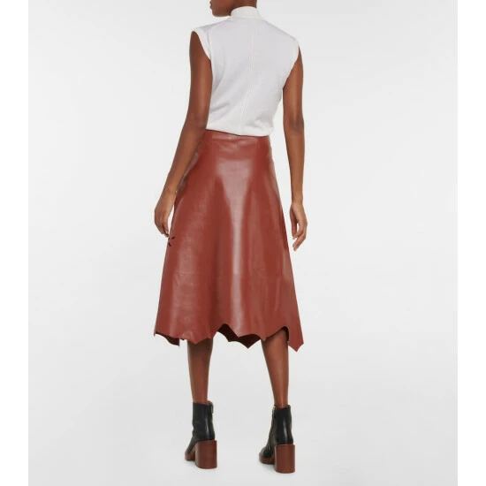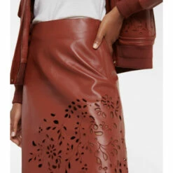 This midi skirt is made from soft nappa leather with a perforated botanical motif that references Chloé’s love of broderie anglaise accents. It comes in a flared silhouette with an irregular, raw-cut hem.