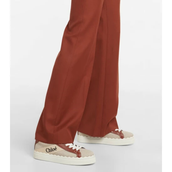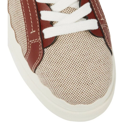 Chloé’s Lauren sneakers have canvas uppers with leather trims and contrasting topstitching. Accented with logo lettering on the sides, they’re set atop rubber soles with signature scalloped edges.