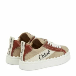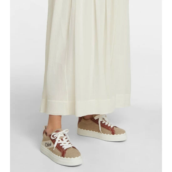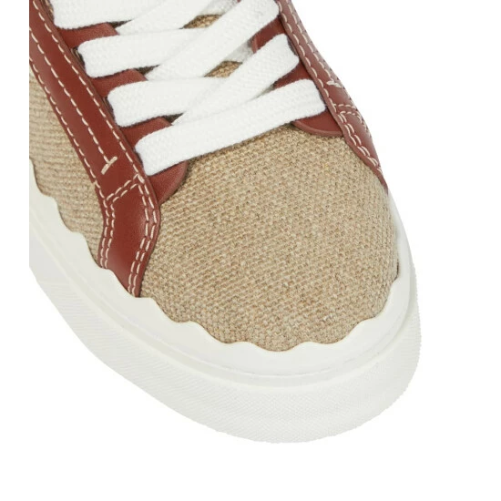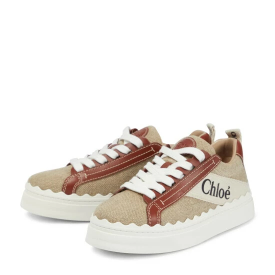 Chloé’s Lauren sneakers have canvas uppers with leather trims and contrasting topstitching. Accented with logo lettering on the sides, they’re set atop rubber soles with signature scalloped edges.