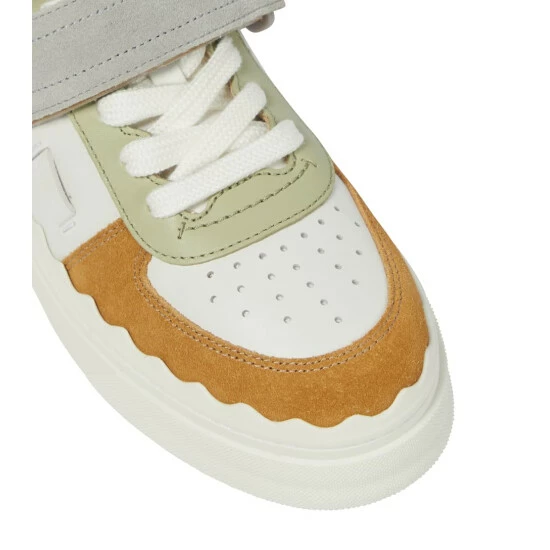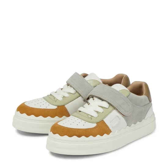 The Lauren sneakers showcase Chloé’s signature feminine vision. This low-top style is made from leather and suede, featuring scalloped trims, recycled rubber soles, and subtle branding.