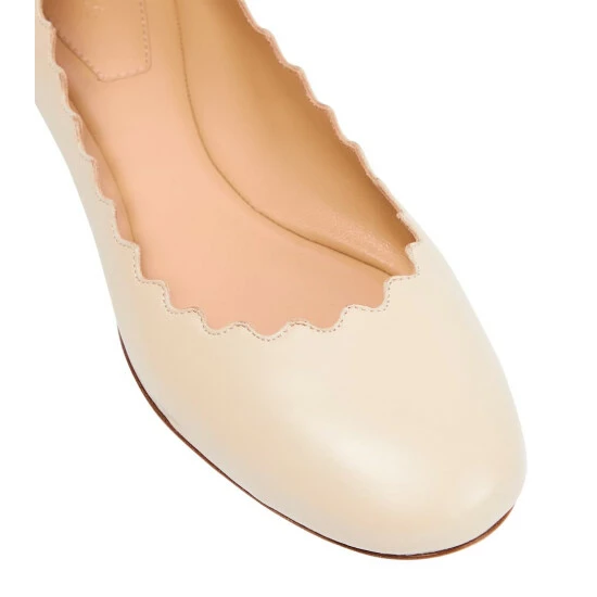 Appearing with the revered romantic vision of Chloé, the Lauren ballet flats embrace a feminine French aesthetic. Sporting a signature scalloped trim to the vamps, this lambskin style has a seamless construction with rounded toes.