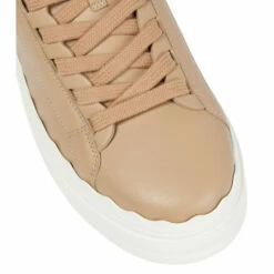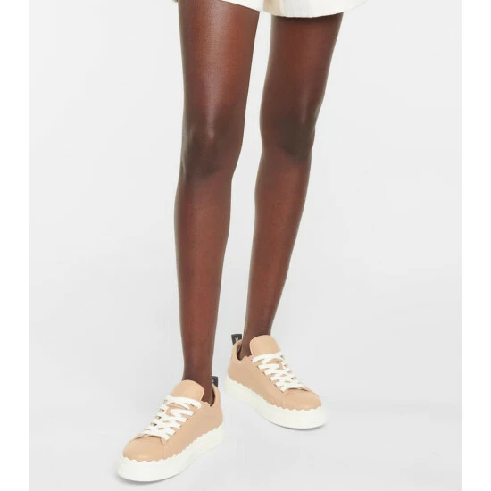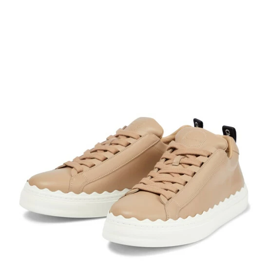 With scalloped trim running around the elevated sole, and embossed logo detailing on the tongue, Chloé’s Lauren sneaker silhouette taps into the brand’s bohemian styling while maintaining a clean sports-luxe look. This pair has been crafted in Spain from buttery soft “pink tea” leather, with contrasting white soles for instant visual impact. Wear yours with a kick-hem miniskirt for a sense of insouciant chic.