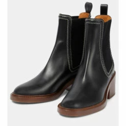 The Mallo ankle boots from Chloé are made from smooth calfskin leather. Resting on chunky block heels, the tonal design has almond-shaped toes and enlarged side inserts.