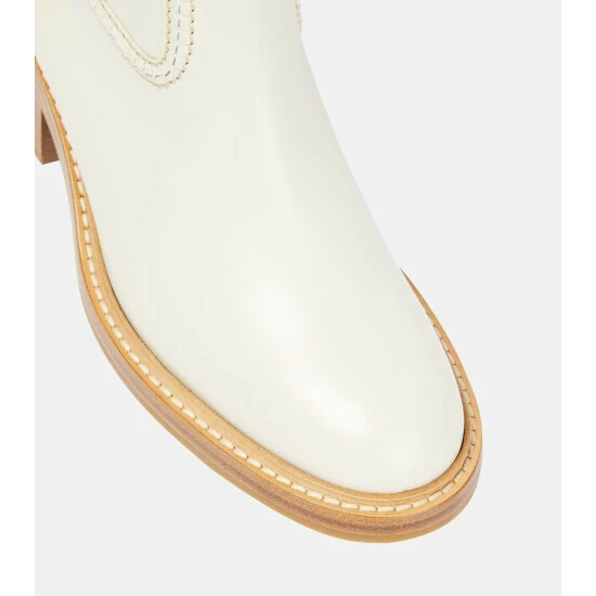 The Mallo ankle boots from Chloé are made from smooth calfskin leather. Resting on chunky block heels, the tonal design has almond-shaped toes and enlarged side inserts.