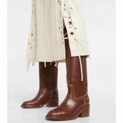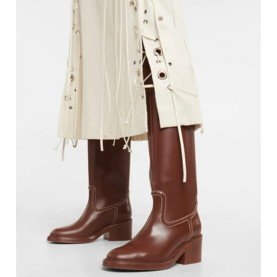A new addition to Chloé’s Mallo family, these knee-high boots are the kind of silhouette you’ll wear over and over again. The block-heeled leather pair is traced with topstitching and rows of meticulously worked cutouts.