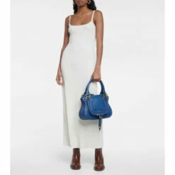 Bohemian-infused touches are a Chloé signature, demonstrated by the Marcie tote bag. This grained calfskin style has two rounded top handles that are wrapped for a dimensional finish, an equestrian-style front flap, and embossed lettering.