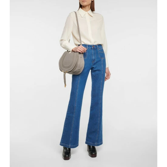 No bag captures Chloé’s bohemian sensibilities so well as the grey Marcie Medium tote. A style icon since its 2010 debut, it’s known for its horseshoe-style curved front panel, contrasting saddle stitches and tassel detailing. It’s made over a 17-hour period, carefully stitched together from 118 pieces of calf leather, and finished with hand-wrapped top handles and a detachable long strap.