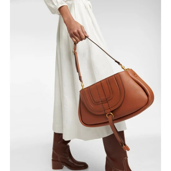 Infuse your style with modern sophistication, carrying the Marcie Small shoulder bag from Chloé next to refined looks. This piece is made from leather to a signature saddle shape with a convertible crossbody strap.