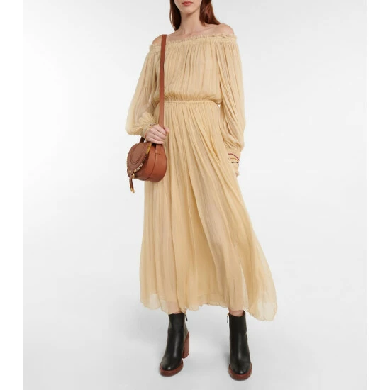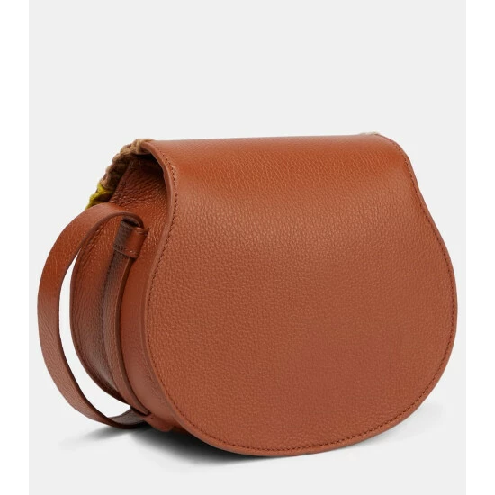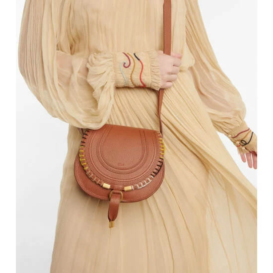 No bag captures Chloé’s bohemian sensibilities so well as the brown Marcie Small shoulder bag. A style icon since its debut, it’s known for its horseshoe-style curved front panel, saddle stitches, and tassel detailing. This season, it’s reimagined with colorful blanket stitching.