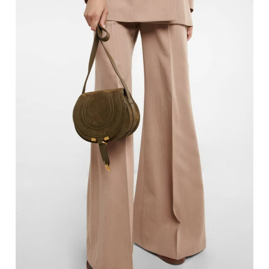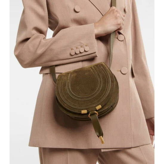 No bag captures Chloé’s bohemian sensibilities so well as the green Marcie Small tote. A style icon since its 2010 debut, it’s known for its horseshoe-style curved front panel, contrasting saddle stitches and tassel detailing. It’s made over a 17-hour period, carefully stitched together from 118 pieces of calfskin suede, and finished with hand-wrapped top handles and a detachable long strap.