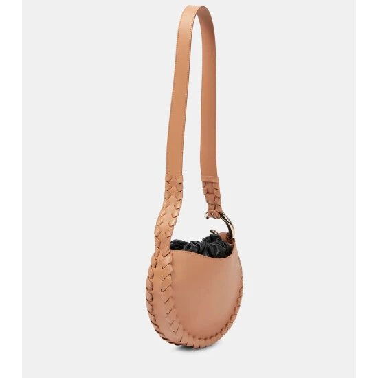 With its elegantly curved silhouette and unique whip-stitched seams, the Mate Small shoulder bag from Chloé is sure to become the brand’s latest “It” bag. It’s crafted from smooth calfskin leather with a drawstring pouch and golden C hardware on the strap.