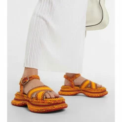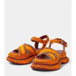 Woven from brightly colored yarns, the Meril sandals from Chloé are set on chunky rubber soles and decorated with braids along the trims and ankle straps.
