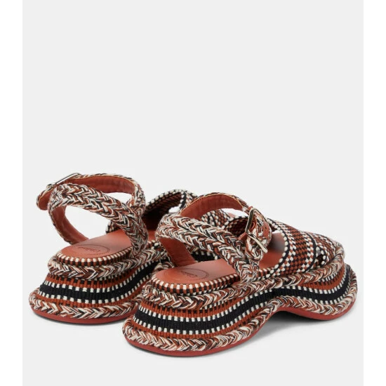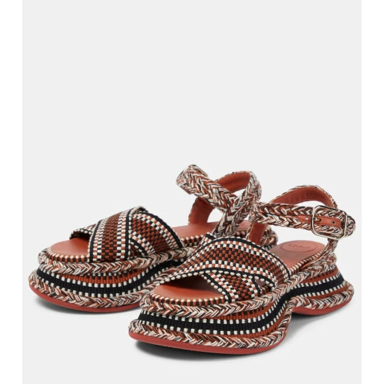Chloé’s artisanal outlook extends to footwear with the summer-ready Meril sandals. They have braided and woven uppers, enhanced with curved platform soles. Note the subtle logo-engraved buckles.