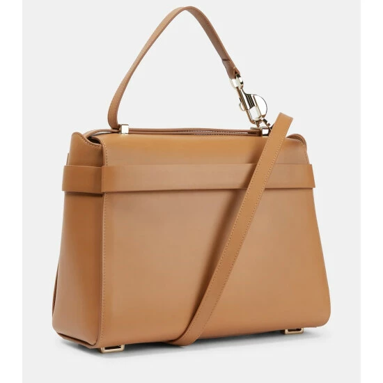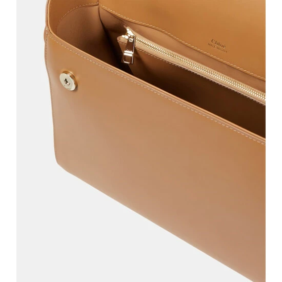 Chloé’s Nacha shoulder bag was crafted in Italy from butter-smooth leather and shaped into a boxy, compact silhouette. The light brown design has a braided detail on the front flap and features a top handle and an adjustable shoulder strap.