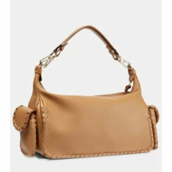The Nahir shoulder bag from Chloé is made from calf leather and distinguished by its braided, tonal trims. The compact style has a detachable shoulder strap, double flap pockets, and a tassel zipper tab.