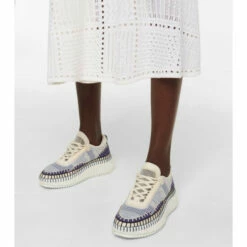 Chloé’s eco-friendly Nama sneakers are made from partially recycled mesh, and set atop lightweight booster soles. They’re framed with colorful hand-stitching, and have logo-embossed suede heel counters.