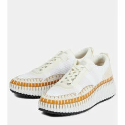 The eco-friendly Nama sneakers from Chloé are made from recycled mesh and set on lightweight rubber soles. This white design has colorful hand-stitched threads and branding on the heel counters, which are made from Leather Working Group-certified suede.