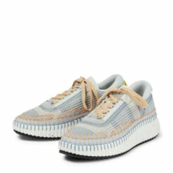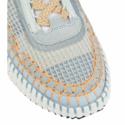 The eco-friendly Nama sneakers from Chloé are made from partially recycled mesh with lightweight rubber soles. This blue pair has hand-stitched threads and branded heel counters, which are made from Leather Working Group-certified suede.