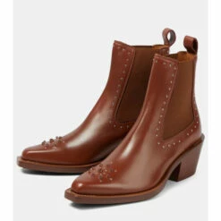 Made from lamb leather, the Nellie boots from Chloé take on a Western-inspired silhouette. Resting on Cuban heels, the design is complete with semi-precious stone and stud embellishments and elasticated inserts.