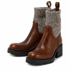 Stylish and practical, the Neva ankle boots from Chloé are crafted in Italy from supple brown leather and feature decorative stitching, low block heels, and tweed-effect wool socks.