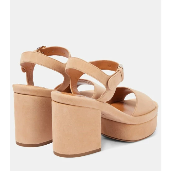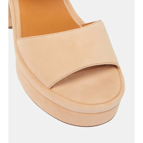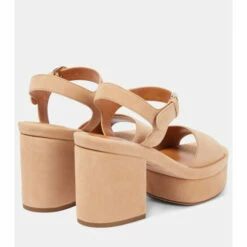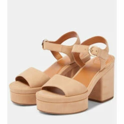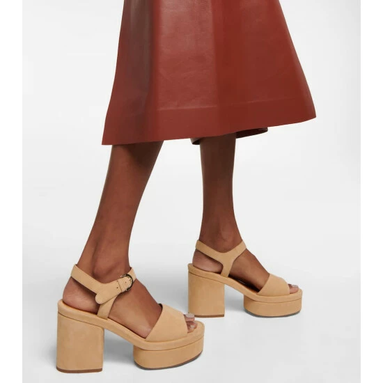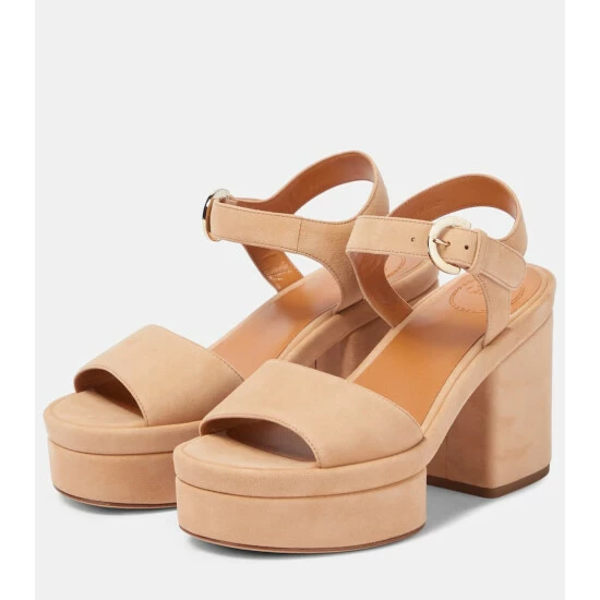The Odina sandals from Chloé are made from suede leather and set atop chunky covered platform soles and block heels. They feature ankle straps with engraved gold-tone buckles.