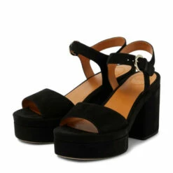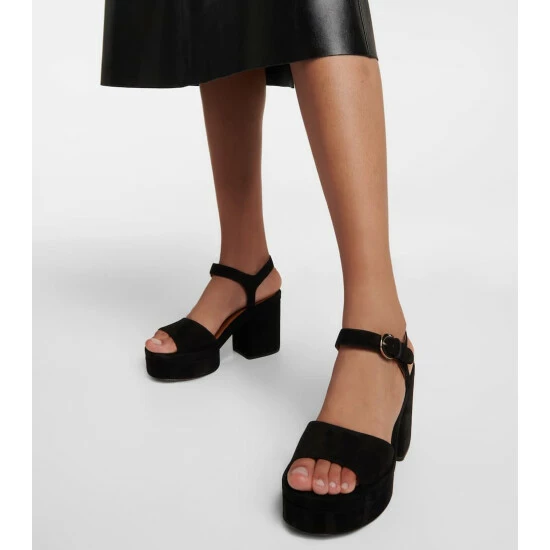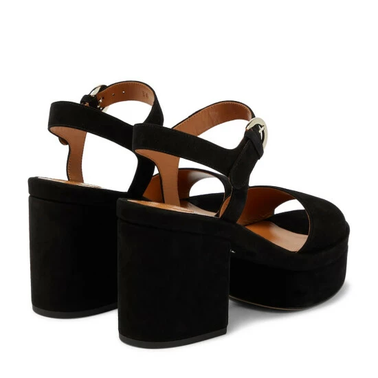 The Odina sandals from Chloé are made from suede leather and set atop chunky covered platform soles and block heels. They feature ankle straps with engraved gold-tone buckles.
